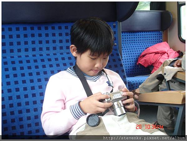 等著等著,月台上人越來越多,老婆建議咱們挪遠一點,人少一點,方便我們一大家子人員加行李上車,於是我們就挪到編定應該是2nd class 車箱與頭等車箱的交界附近[2]。時間一分一秒過去,車子還是沒進站,眼看人越來越多,問了旁邊幾個背著大背包的年輕人,也沒人知道發生了啥事,後來他們其中一個人去問,才知道改月台了,還好只是改到隔一道月台,繞過去,上車就定位,剩2分鐘,車子準時開動。